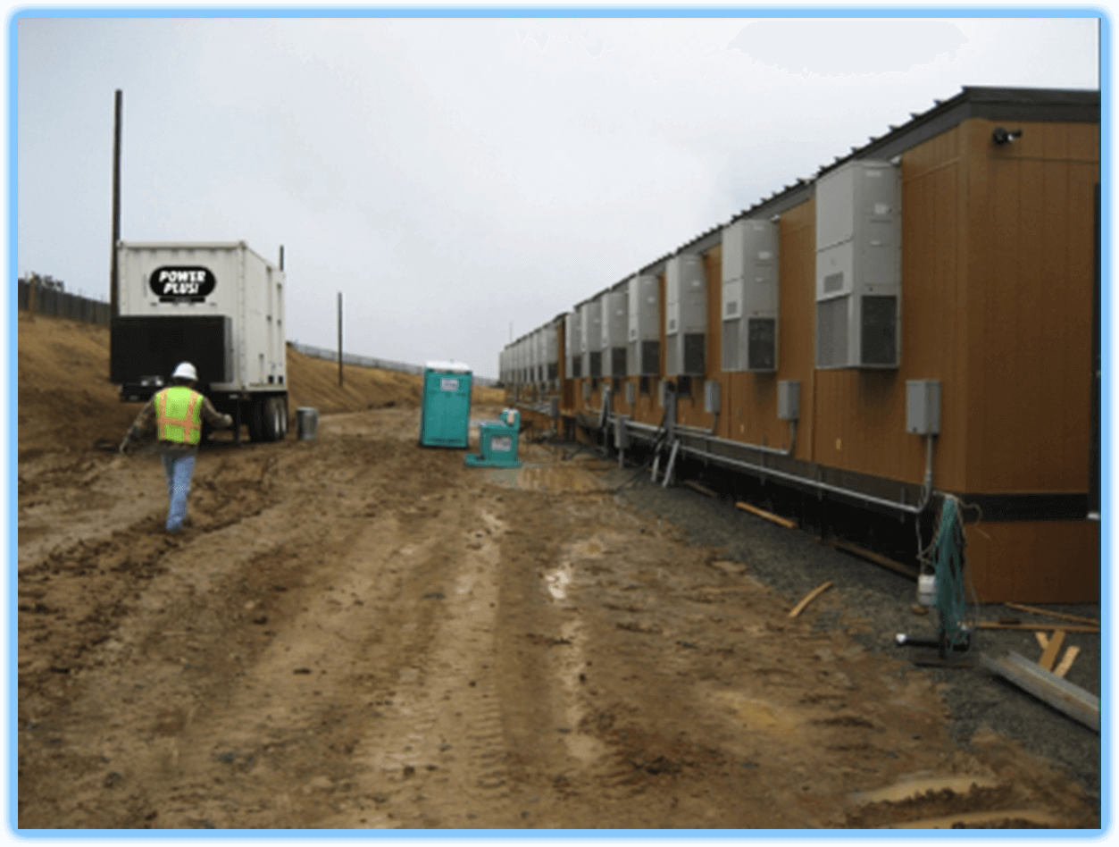 In Northern California, the Calaveras Dam Retrofit project began with the installation of a construction trailer compound consisting of 20 trailers. While Power Plus worked to install a 12 kilovolt utility line extension, we installed an 800kW portable generator to temporarily supply power to the trailers. We performed all the connections including installing all the conduit on the trailers and undergrounding the feeders back to the generator.